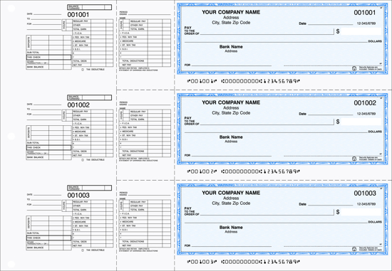 3-Ring Binder Payroll Checks 2 Part Blue (DFC-186-2)