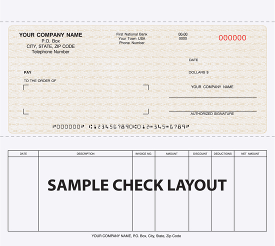 Create a custom check using your own artwork in two easy steps. Specify your color, parts and quantity. Send us your custom check design.