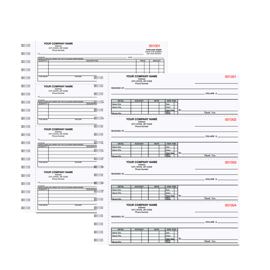 A multiform book adds convenience and reduces the number of lost forms. You can also add a custom cover for a professional look. Use one of our convenient Ready-To-Go formats or submit your custom art to make your book exactly what you need.