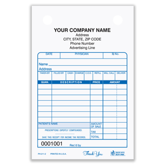 Our Pharmacy Register Forms offer personalization, including the business name, address, advertising line, phone number, and logo, as well as color imprinting.